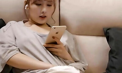 Blonde slut young Asian girl with sexy lingerie teasing brother and her wet pussy got ravaged so hard