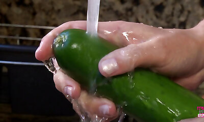 Crazy damsel ramming a cucumber in her tight fuck hole