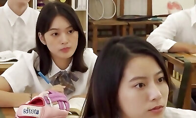 AI Hot Asian teacher jumps on a student's pipe right in a classroom