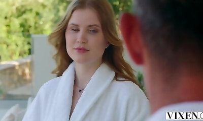 Crimson haired seductress Angelina enjoys a full body massage and passionate hook-up