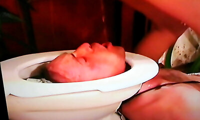 Sexy MILF pisses in her restroom marionette's mouth. Golden Rain. Compilation