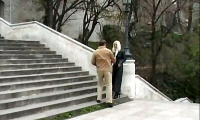 Sultry milf in a white lace dress banged by his big cock