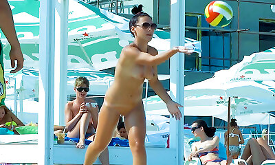 Volleyball with marvelous nude beach woman caught on a hidden camera