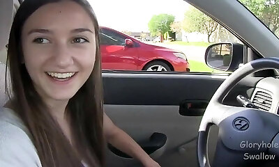Slutty teen Lily Moon gives a great blow-job and gets a mouthful of cum
