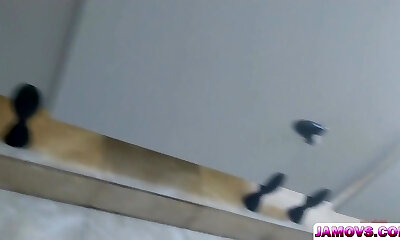 Creampie for hot Japanese in ultra-kinky voyeur massage video