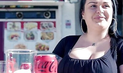 Fat rounded whore Kali West jumps on a small cock