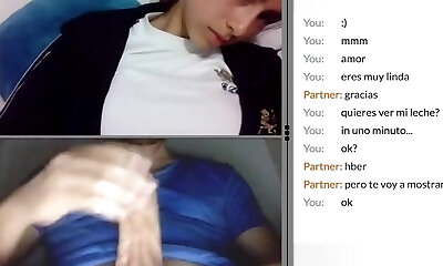 Nasty brunette dame has cybersex with a stranger on chat roulette