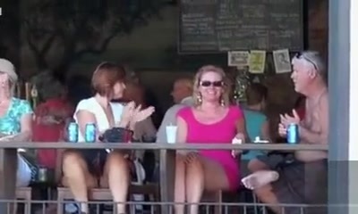 Ash-blonde Bikini CFNM Dick-Flashing with Big Tits