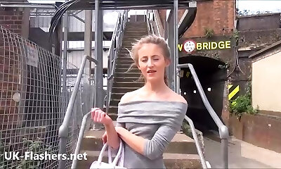 Sexy platinum-blonde teen Sallys public flashing and plucky exhibitionist adventures of cute girl next door babe outdoors