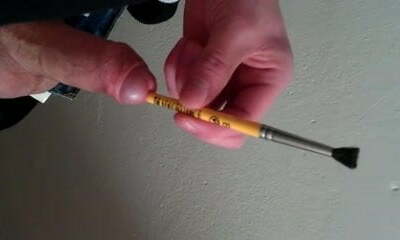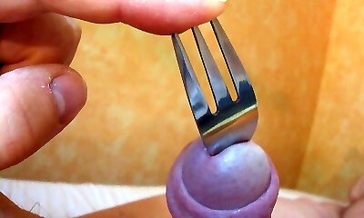 Urethral probing of a ginormous dick ended with a money-shot on the MILF chest and armpit. Urethral penetration